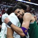 Horford threw the game ball into the air. Horford was given the Bob Cousy trophy when the Celtics won the East.