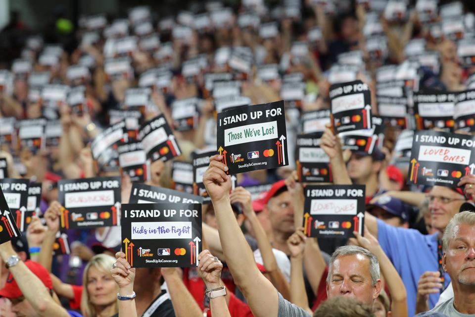 "Over the course of our 11-year partnership, MLB has pledged more than $50 million to support Stand Up To Cancer's mission to fund groundbreaking cancer research. We are proud of our work with SU2C, especially the powerful placard moment at each of our jewel events that has helped spread a tremendous amount of awareness," said Manfred. "Tonight's placard moment at the World Series will be the 17 th time we have stood together in recognition of those affected by cancer."