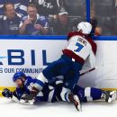 With 6:05 left in the third period, Kucherov left the game. As Kucherov handled the puck, Toews stuck his stick in his back and pushed him into the boards as he fell to the ice. The player who received a minor penalty on the play was Jonathan Toews.