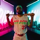 The sixth game of the suspension was played on Sunday. He won't get his seventh until Tuesday, when he faces Sandy Alcantara in the first game of a three-game series.