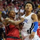 In his summer league debut, he played four four-minute spurts at the start of each quarter to help his team beat the Spurs. He checked back in for the last three minutes of the game. He finished with 11 points on 6-of-7 shooting and 2 blocks.