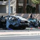 According to authorities, the Toyota was 571 feet away from The Strip when it was hit by the Corvette and set ablaze. The deaths of Tintor and her dog, Max, were ruled to have been caused by fire.