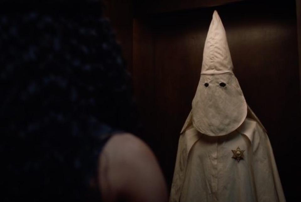 Angela takes this statement very literally indeed, and uses a pair of night vision goggles to investigate Judd's house, uncovering a pristine Klu Klux Klan outfit inside a closet. It's a little on-the-nose, sure, but a great visual that outlines the bizarre fantasy of the cosplaying racist, and the resemblance to modern-day superhero outfits.