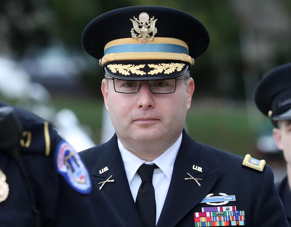 Lieutenant Colonel Alexander Vindman arrives at the U.S. Capitol on October 29 to appear at a ... [+]