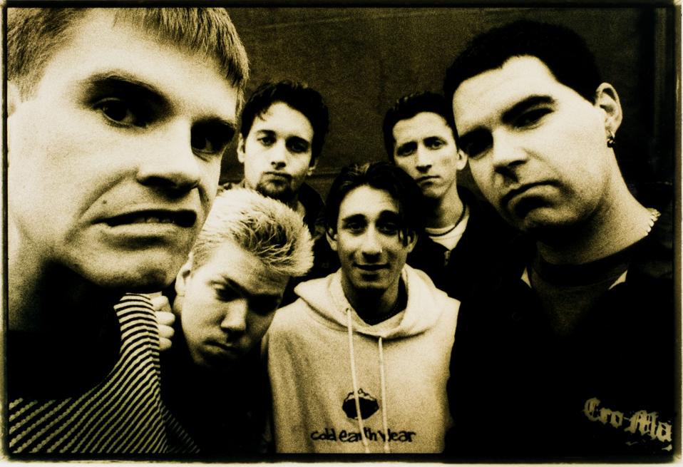 Dog Eat Dog, group portrait, taken at Lowlands, Biddinghuizen, Netherlands, in August 1995.