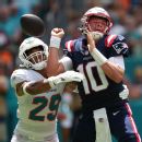 He fumbled the ball and the Dolphins returned it for a touchdown after he was sacked twice. On a fourth-quarter play in which Miami was flagged for a roughing the passer penalty, he absorbed a crushing blow from two Dolphins defenders.
