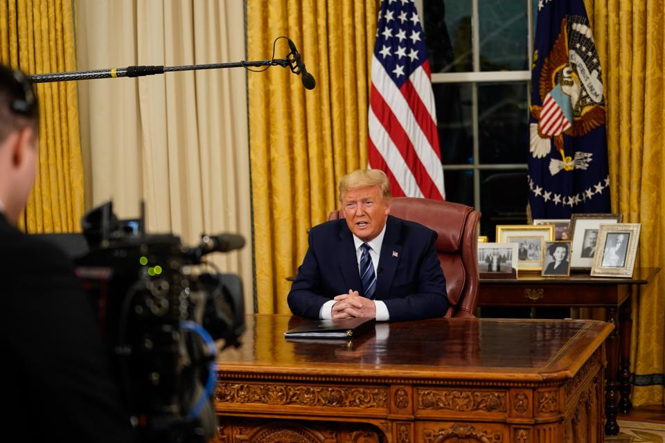 U.S. President Donald Trump addresses the nation from the Oval Office about the widening Coronavirus ... [+]