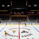 The SunDevils men's hockey team will have their logo painted on the center ice of the arena. The ceremonial first puck was dropped by a father and son.