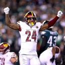 With the Eagles trailing by two, Hurts passed to Goedert for a first down. Linebacker Jamin Davis grabbed and pulled Goedert's face mask as he tried to tackle him, and a hit by defensive tackle John Ridgeway knocked the ball away. Ridgeway's weight was on top of Goedert as he was driven to the ground. The player returned to the game after being evaluated on the sideline.
