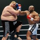 At 10 p.m., the main event bout between Roberto "Satoshi" de Souza, a Brazilian-born fighter with Japanese heritage and Koike Erbst, a Japanese-born fighter, took place. He covered his face with a horned helmet while walking out. The fake cash was shot out by cannons as he made his way down the ramp. He waved a sword around before entering the ring.