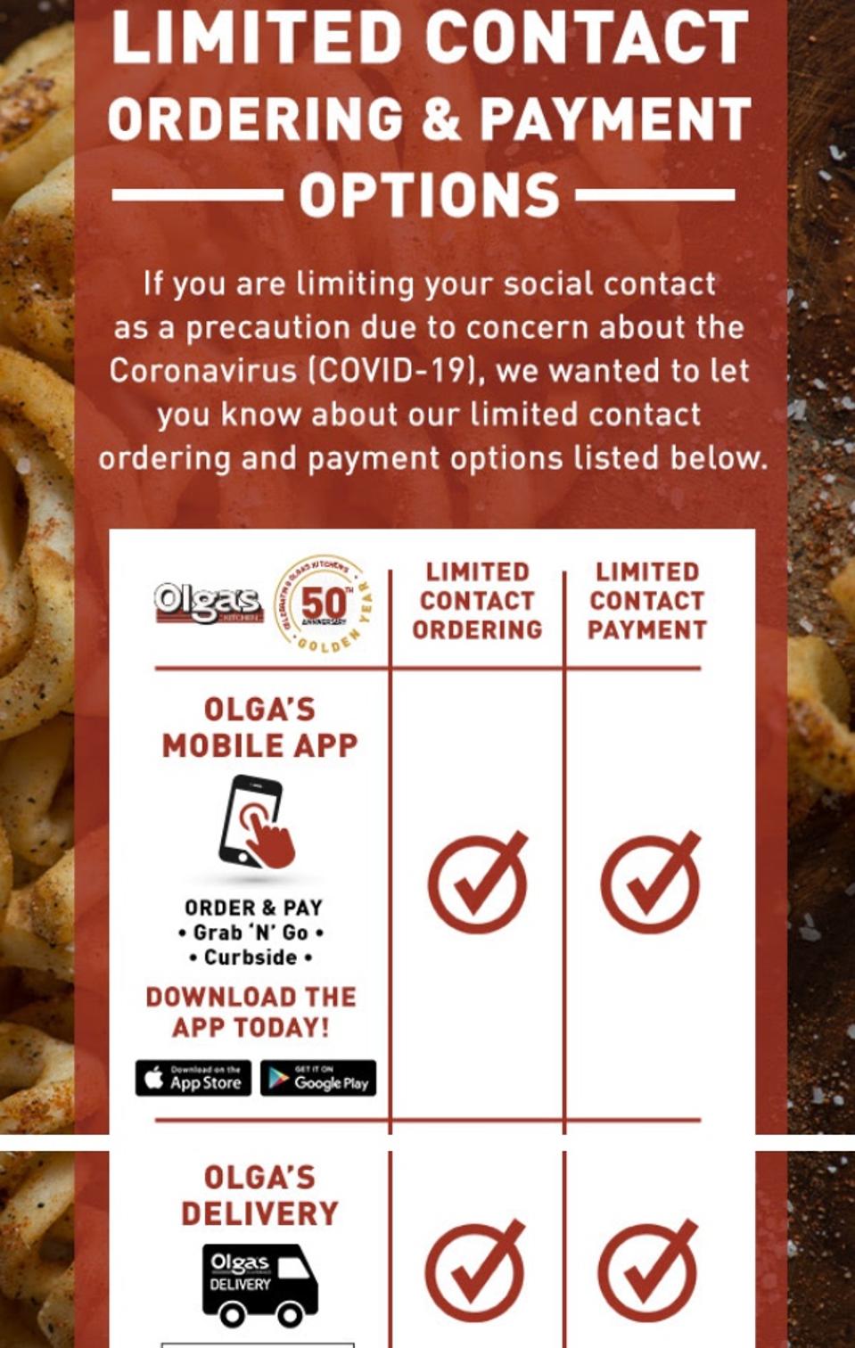 Olga's, located throughout the Detroit area, is encouraging customers to use its app and delivery ... [+]