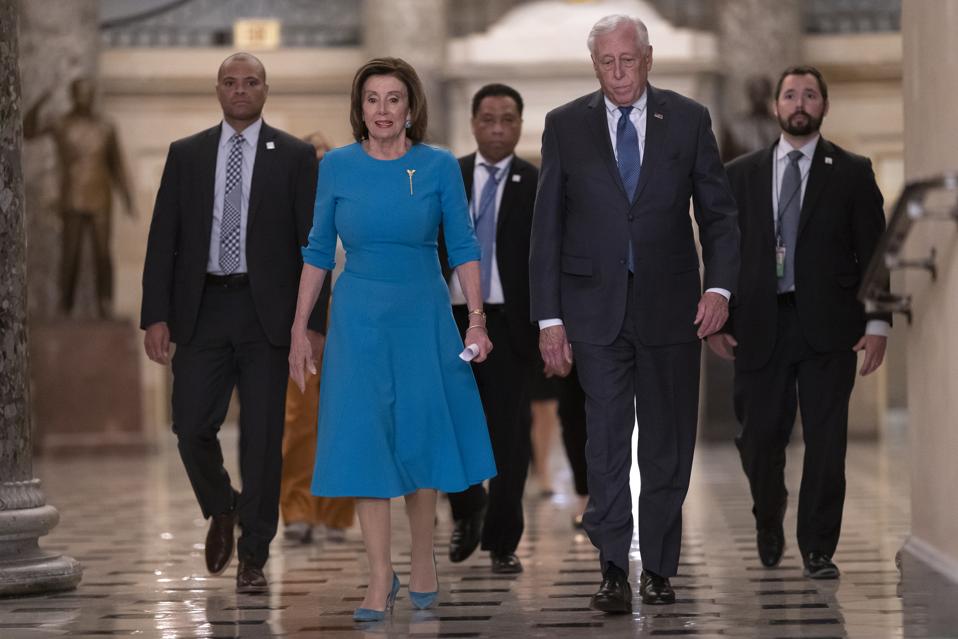 Speaker of the House Nancy Pelosi, D-Calif., and Majority Leader Steny Hoyer, D-Md., arrive to make ... [+]