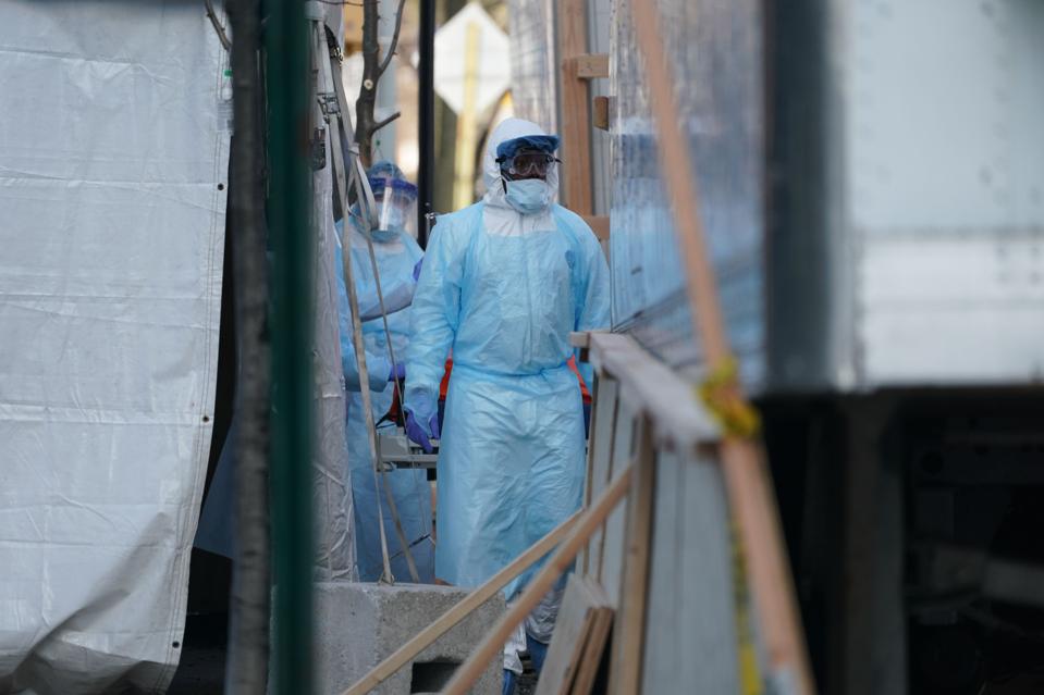 A body is moved to a refrigerator truck serving as a temporary morgue outside of Wyckoff Hospital in ... [+]