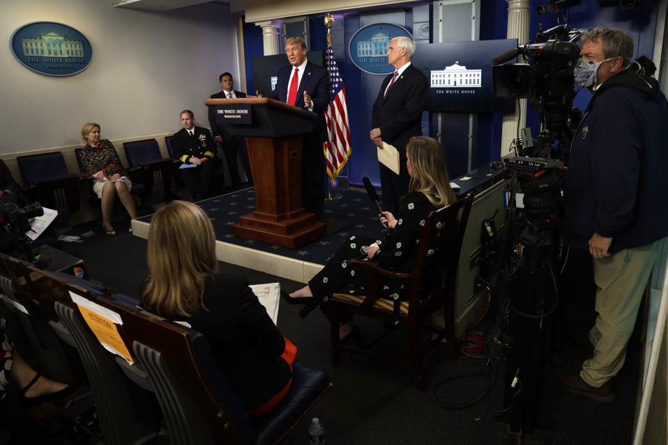 WASHINGTON, DC - APRIL 13: U.S. President Donald Trump speaks as Vice President Mike Pence listens ... [+]