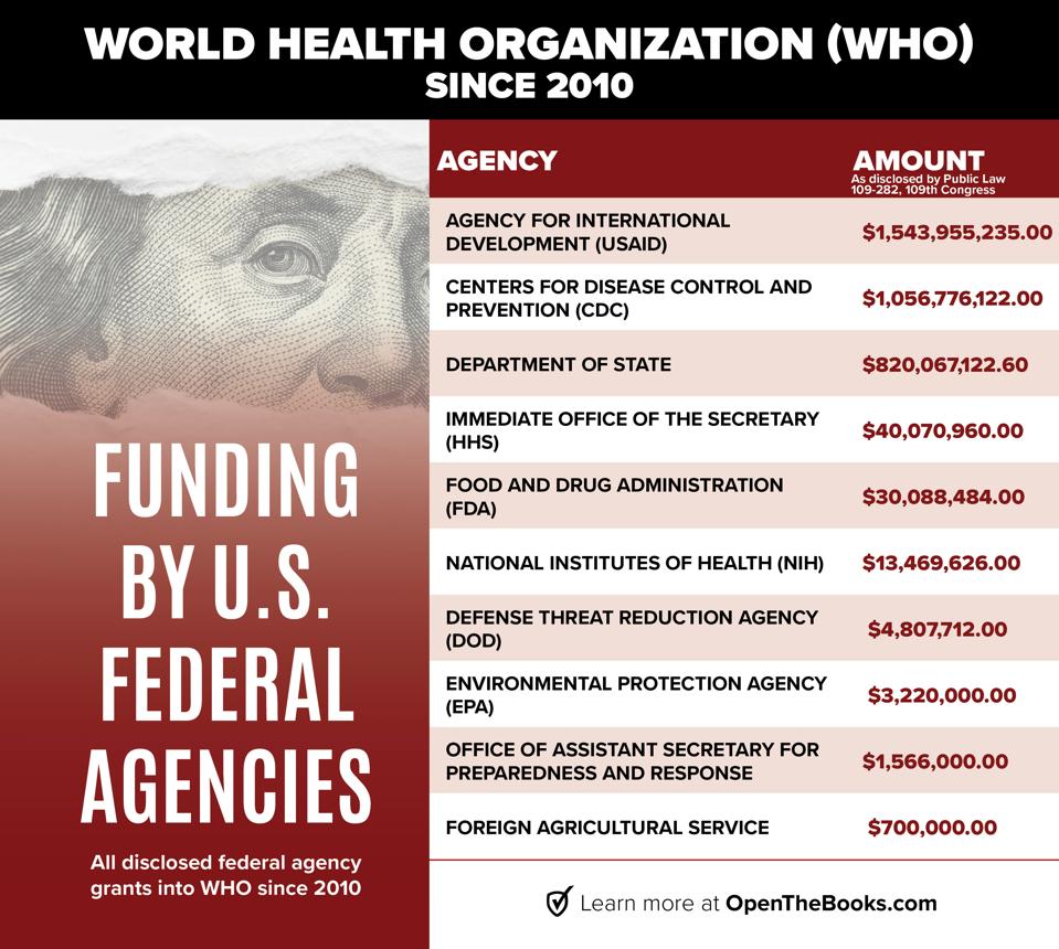 Our auditors at OpenTheBooks.com reviewed all disclosed grants by federal agencies to the WHO since 2010 and found that $3.5 billion in taxpayer money funded the WHO during this period.