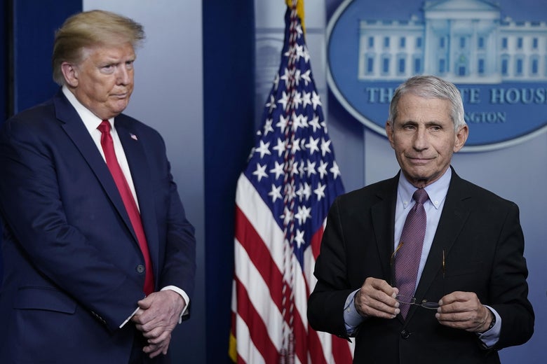 President Donald Trump is smearing Dr. Anthony Fauci, the director of the National Institute of Allergy and Infectious Diseases. Trump wants businesses and schools to reopen sooner than Fauci thinks is safe. So the president has fabricated a story about Fauci giving bad advice. Trump's goal is to make the public think that Trump, not Fauci, knows best what to do about the novel coronavirus. But his fabrication shows the opposite: While Fauci tells the truth, Trump tells lies.
