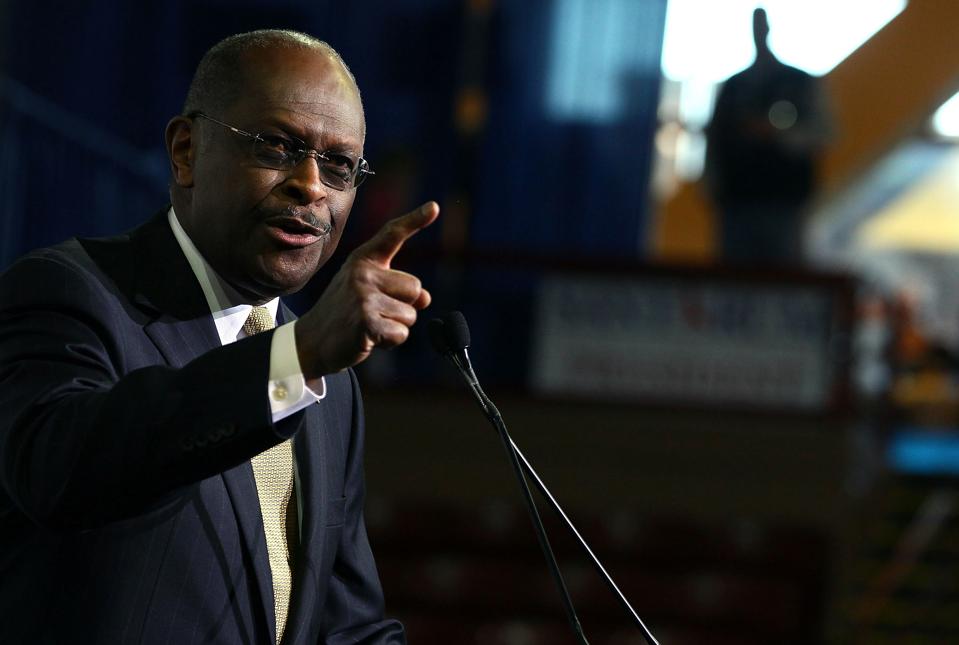 Cain is a business executive who has worked as CEO of Godfather's Pizza and chairman of the Federal Reserve Bank of Kansas City. Cain rose to national prominence in 2011 when he launched an outsider campaign for the GOP presidential nomination. His 9-9-9 tax plan and debate performances led to a brief lead in the polls, but he declined and dropped out before the Iowa caucus.