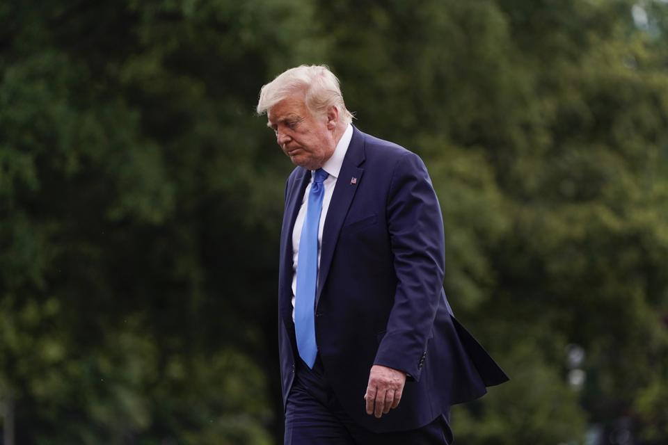 WASHINGTON, DC - JULY 11: U.S. President Donald Trump walks to the White House after visiting Walter ... [+]