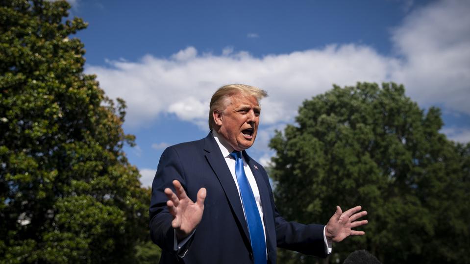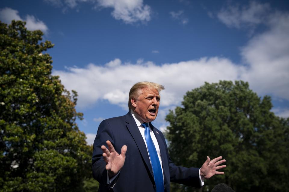 WASHINGTON, DC - JULY 11: President Donald J. Trump speaks to reporters as he departs to visit ... [+]