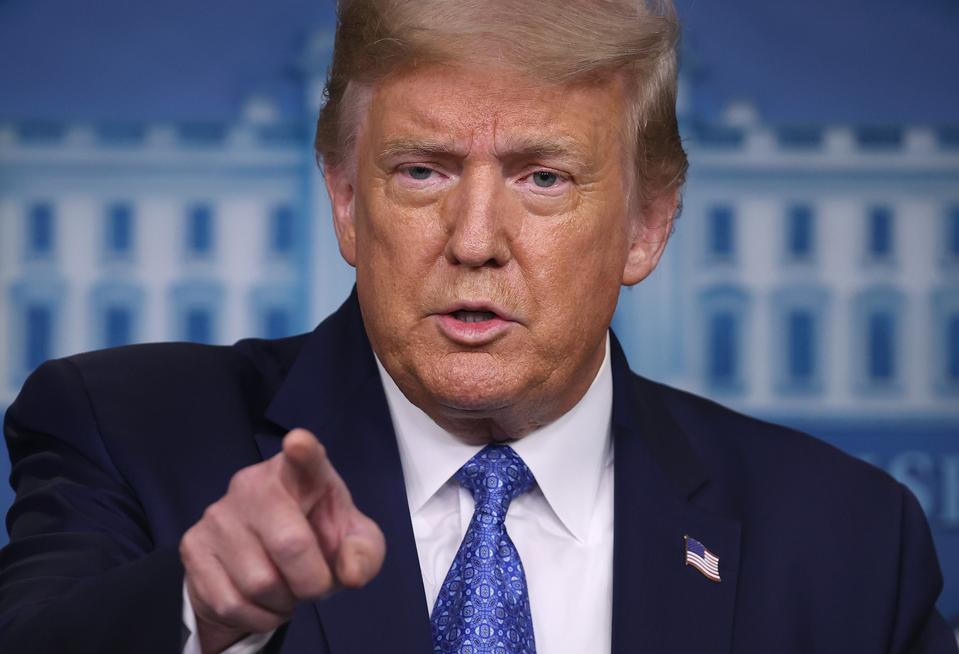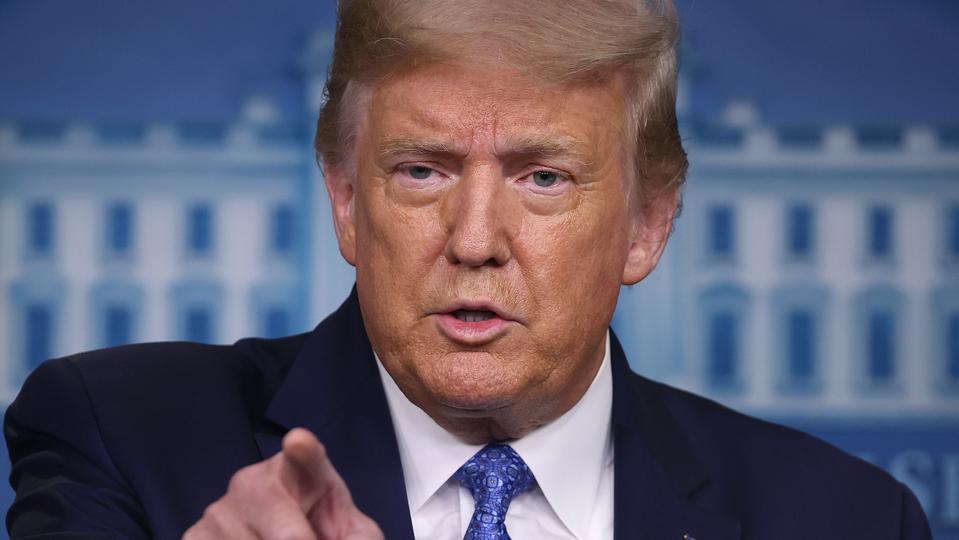 WASHINGTON, DC - JULY 22: U.S. President Donald Trump talks to journalists during a news conference ... [+]
