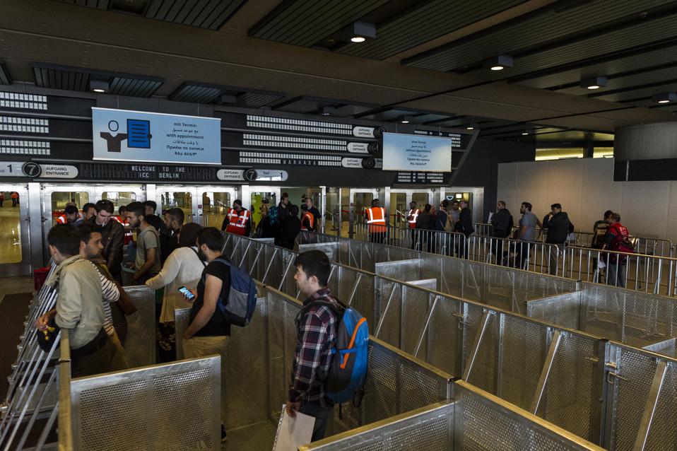 Asylum seekers are pictured while waiting for their registration process in a registration unit of ... [+]
