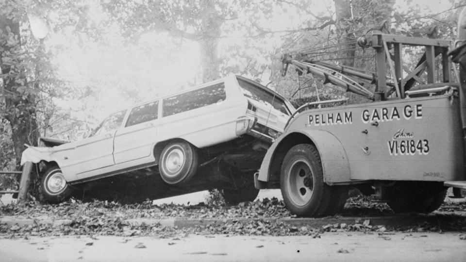 The station wagon that Doris Duke drove into Eduardo Tirella was towed away. Duke had crashed the rental car into a tree.