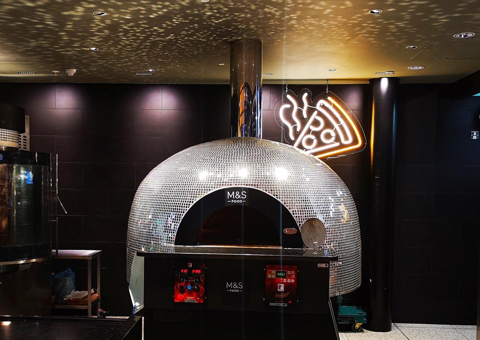 A focal point in the store is the wood-fired glitter ball pizza oven