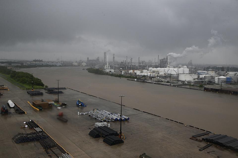 Oil refineries next to the Houston Ship Channel during Hurricane Harvey, which halted production as ... [+]