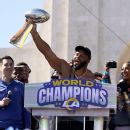 Matthew Stafford and his wife, Kelly, said Thursday that they would pay the medical bills of the photographer who fell off the stage at the Super Bowl celebration.