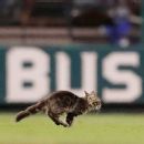They cover their heads as they leap over a mound. Watkins phone rings after one shot.