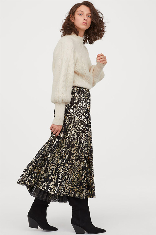 I think it's necessary to point out all the runway-inspired goodies poised to sell out at pronto! It seems the rest of the world has not caught on yet to these giddily-affordable scores, but I'm officially letting the cat out of the bag--or at least into my shopping bag! Let's start with the the pleated gold-flecked (that in real life looks--no joke--fancy designer) along with the terrific suede western , the chic fringed as well as the boxy