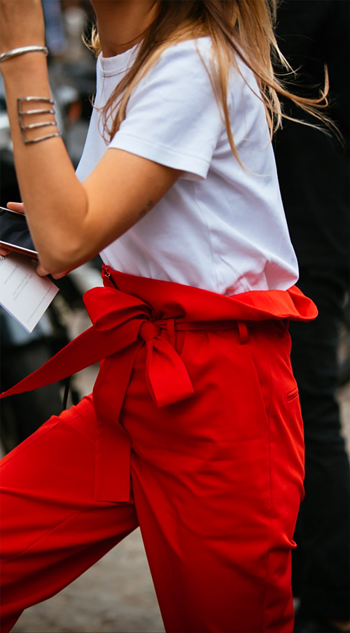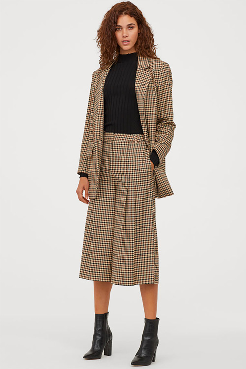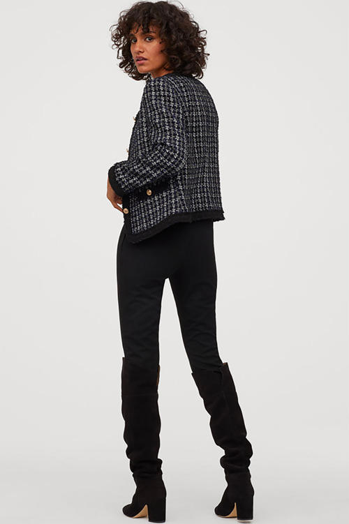 red paper bag pants , above, and the totally amazing -spirited hounds-tooth , below . Then check out the following: Chanel-like one (I'd size up for a cooler, oversized fit), the pearl-embellished ($19!!) , the tapered high-waist , the perfectly pastel knit hoodie and the metallic puffer jacket (last snap). I'll drop the mic now.