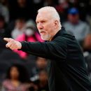 Popovich has 1,336 career victories, moving him past Don Nelson for most regular-season victories. The time is 1:05.