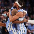 Howard hugged and talked to the very emotional Chandler after his 11 seed UM upset the 3 seed Volunteers 76-68 to advance to the Sweet 16 for the fifth straight year.