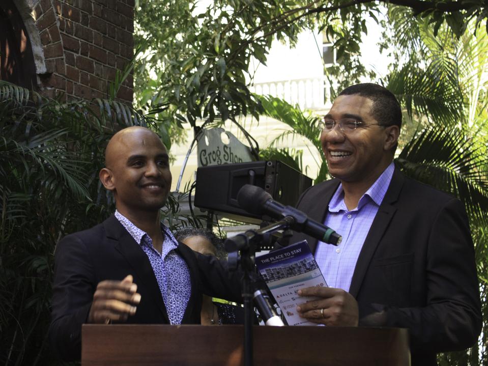 Kirk-Anthony Hamilton and Prime Minister of Jamaica, the Honourable Andrew Holness at the ... [+]